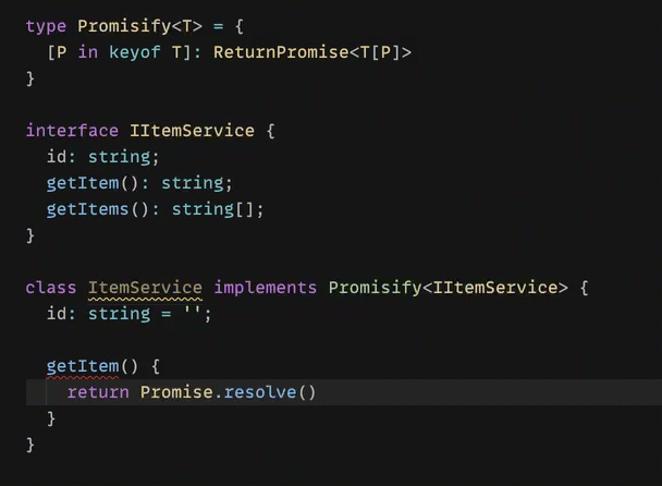type ReturnPromise<T> = T extends (...args: infer A) => infer R ? (...args: A) => Promise<R> : T;