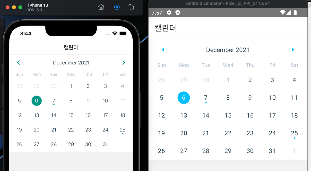 색상 변경 등의 반영은 앱을 리로드하여야 반영된다. (아래는 ios앱만 리로드 했을 때의 모습)