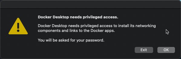 "Docker Desktop needs privileged access."