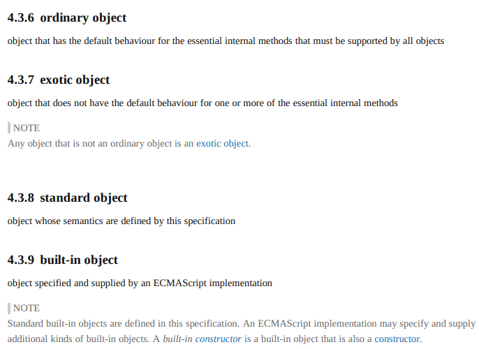 ECMAScript 6 명세에서 설명하는 객체 카테고리