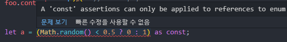 2019/12/27 - [Typescript] - 더 나은 타입스크립트 작성하기 1 - Skills에 이어, Skill적인 부분이다. 하지만 이것을 알기 전에 먼저 const assertions에 대한 개념을 알아야한다.