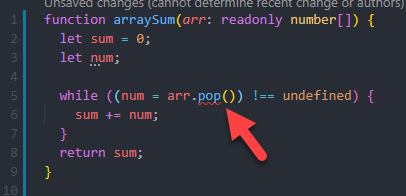 계속 배열을 값을 비우는 side effect를 만들고 있었던 것이다. 이것을 해결할 수 있는 가장 좋은 방법은 arraySum() 함수에서 배열을 수정하지 못하게 하는 것이다. 그것을 타임스크립트에서는 readonly가 도와준다.