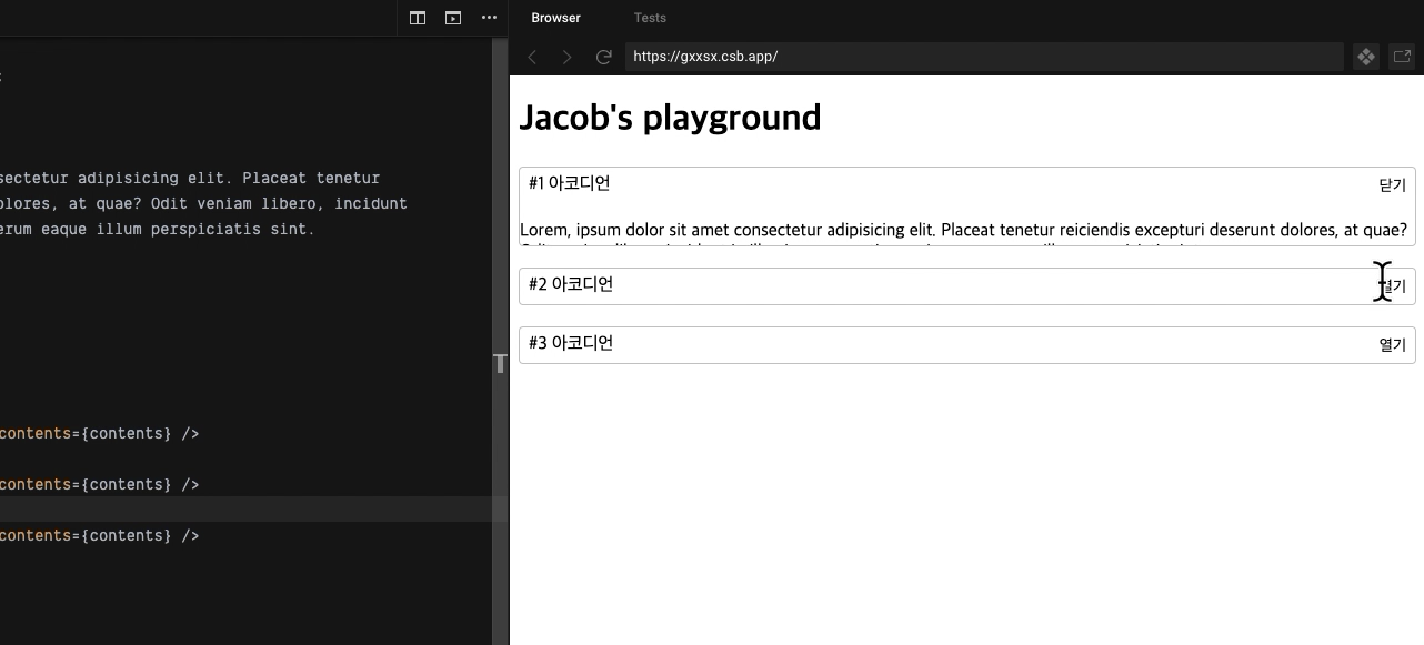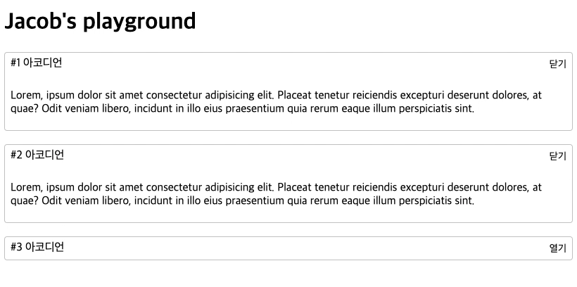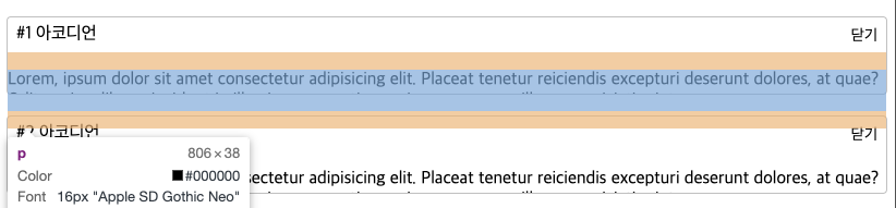 위와 같은 상황이다. 나는 Lorem 글을 아코디언으로 가릴 것이다.