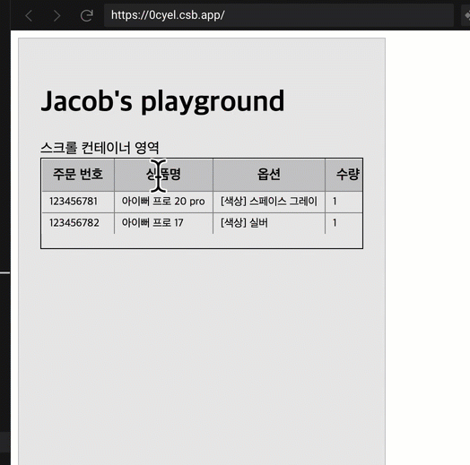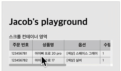 그래서 하나의 컨테이너로 이 표를 감싸고 영역 안에서 스크롤이 될 수 있게 한다.